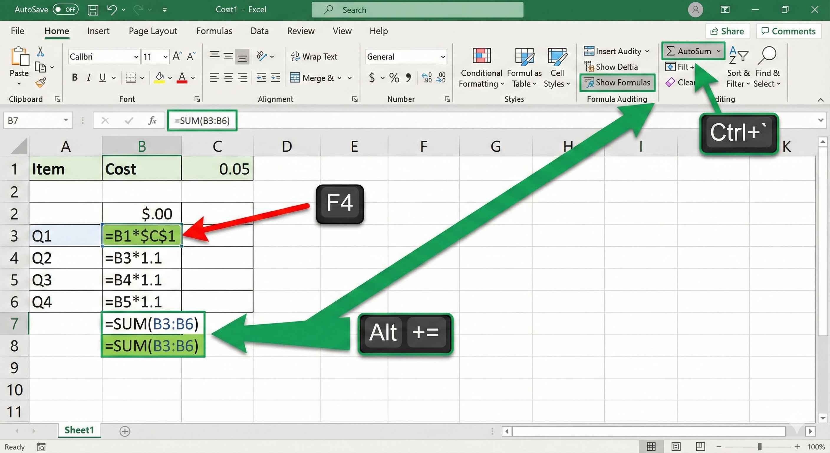 - Ctrl + ' (apostrophe) - Copy formula from cell above