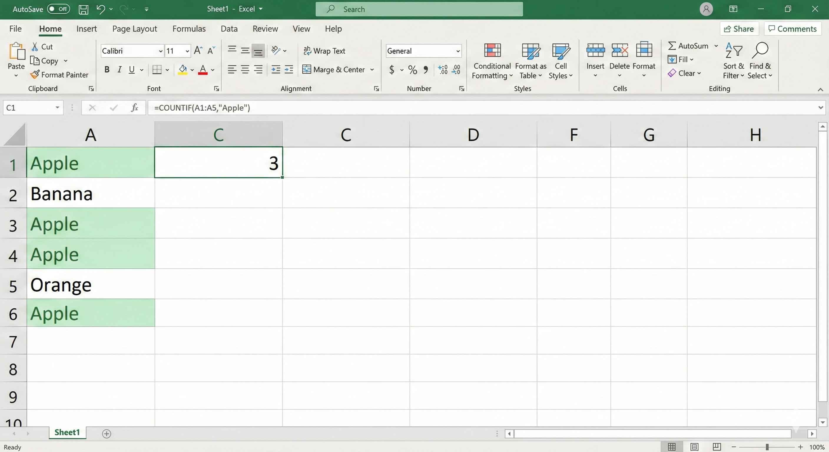 | COUNTIF | One condition | =COUNTIF(A:A, "Yes") |