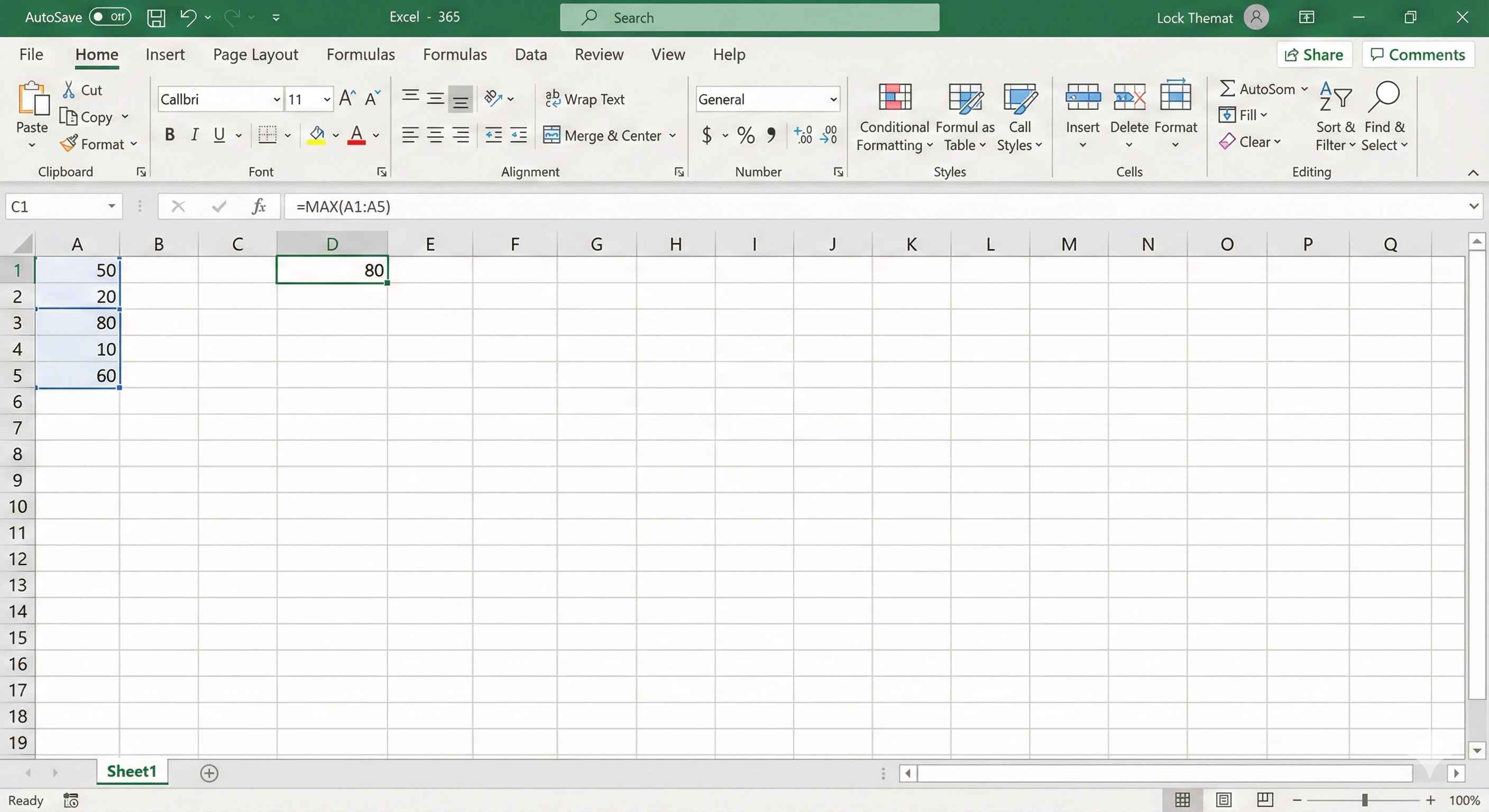 | =LARGE(A1:A5, 1) | 80 (1st largest) |
