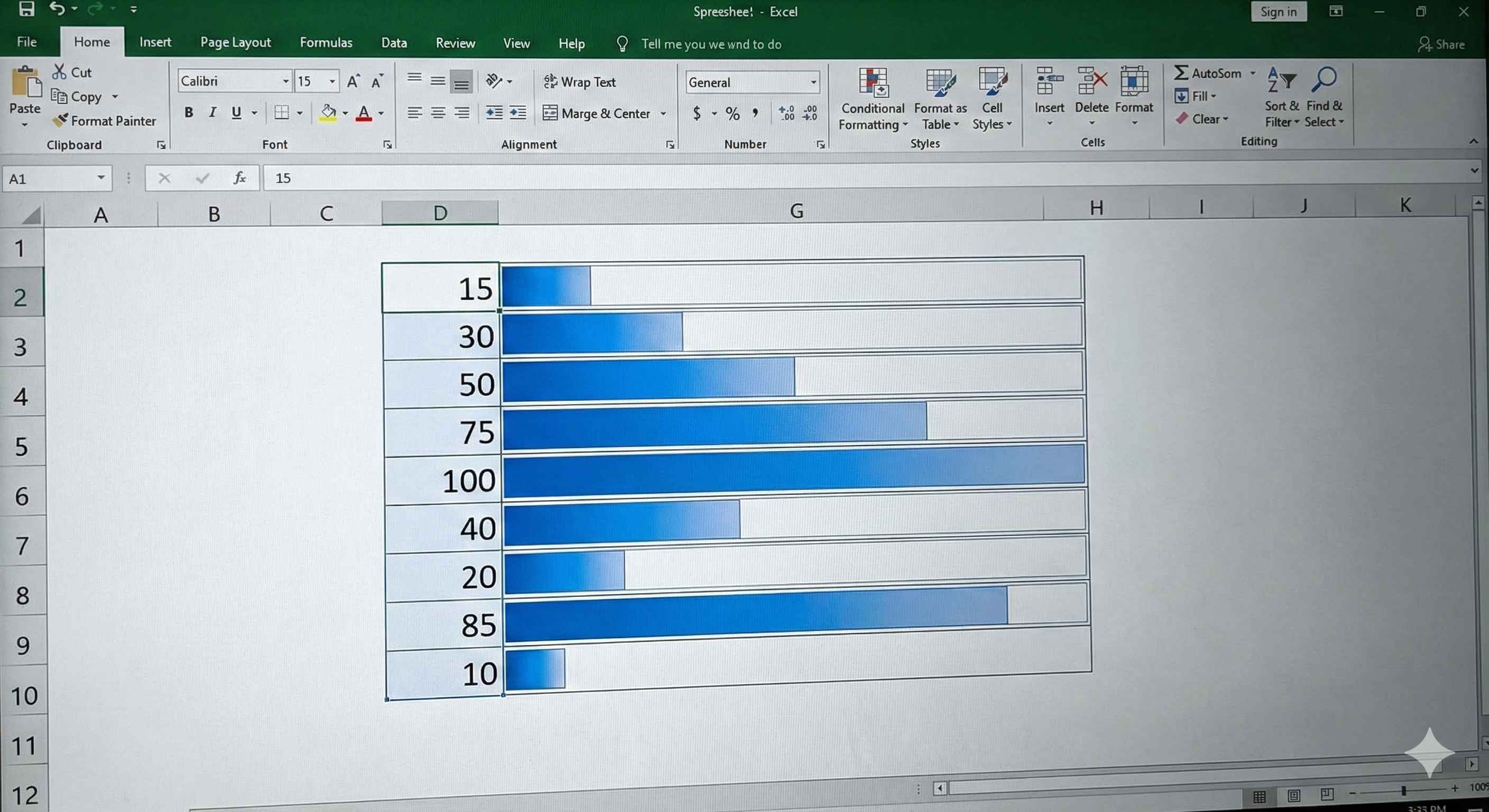 Now each cell has a bar. Longer bar = bigger number. You can compare values instantly.