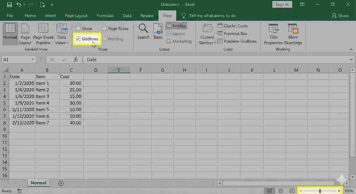 Headings are the row numbers (1, 2, 3) and column letters (A, B, C).