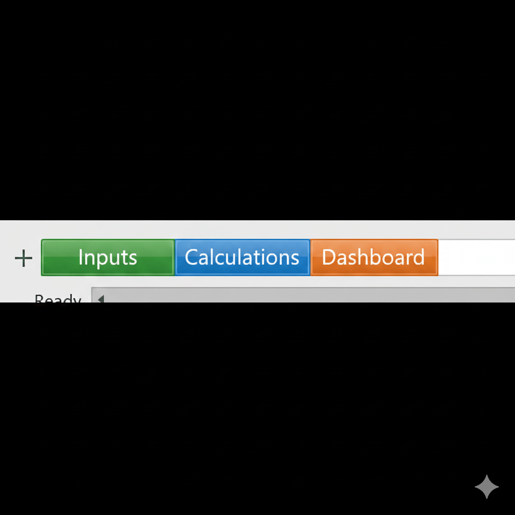 ā Checkpoint: You should see three colored tabs: Inputs (green), Calculations (blue), Dashboard (orange)