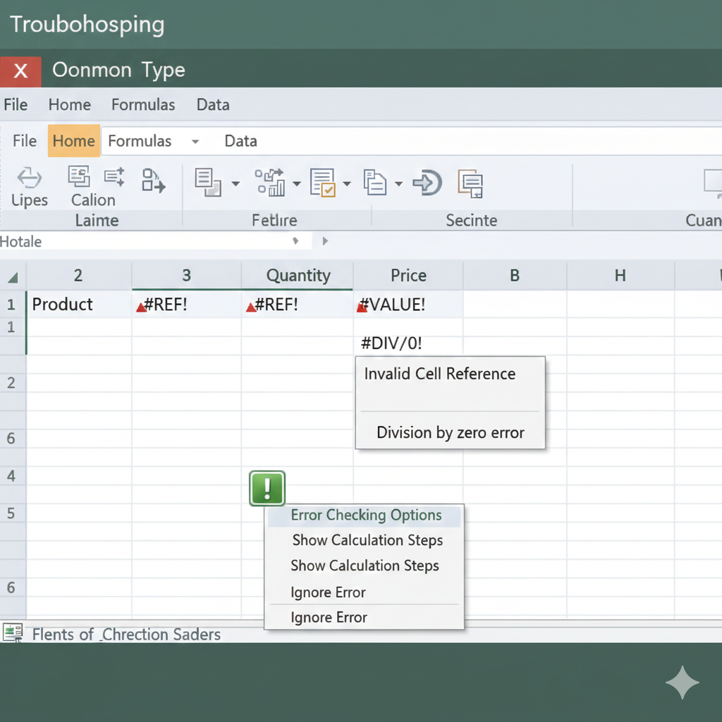 What you see: #REF! in your formulas Why it happens: You deleted a cell that a formula references Fix: Press Ctrl + Z to undo. Be careful not to delete rows/columns.
