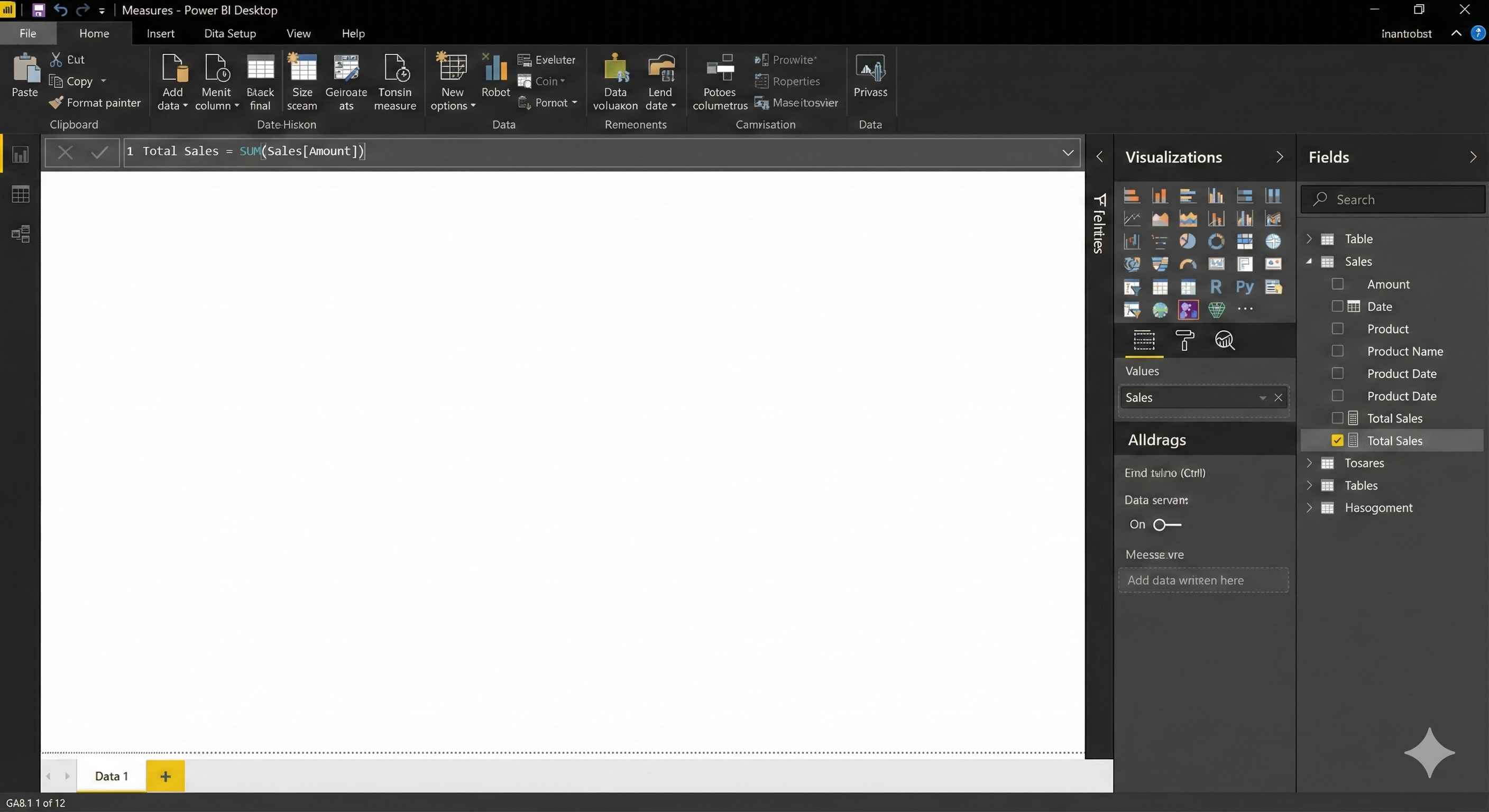 Total Sales = SUM(Sales[Amount]) - Press Enter